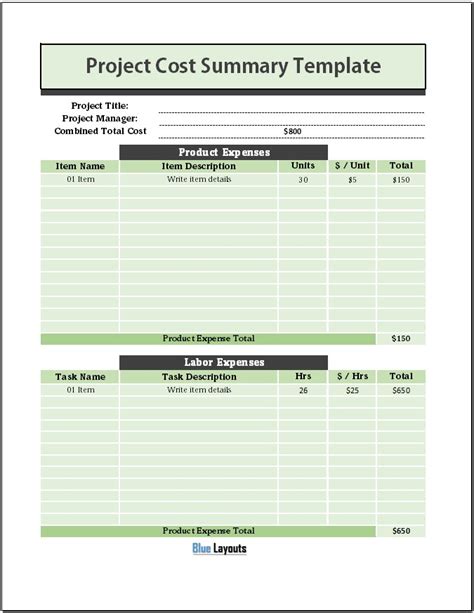 cost report summary
