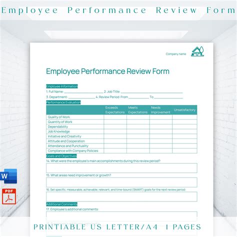 editable employee performance review template