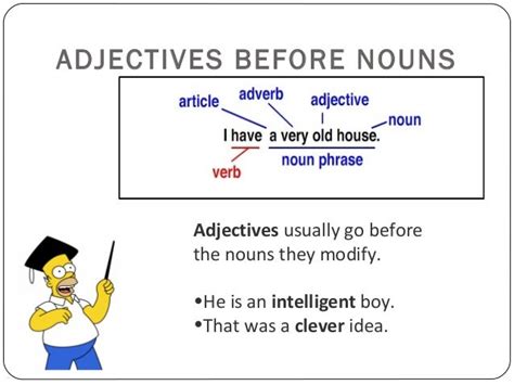 examples of adjectives before nouns. There are any references about examples of adjectives before nouns in here. you can look below.