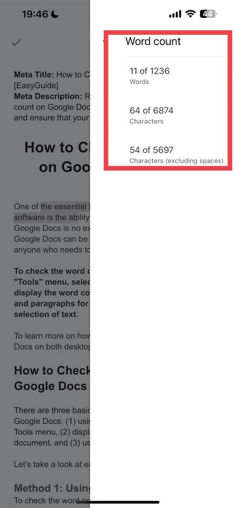 how to check word count on google docs mobile