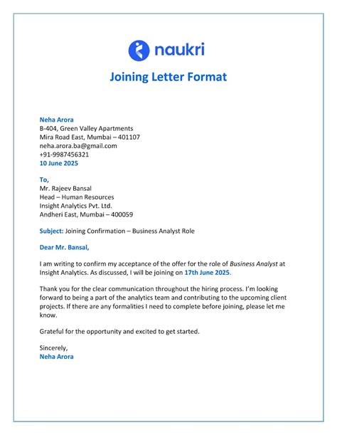 how to write a joining letter in word format