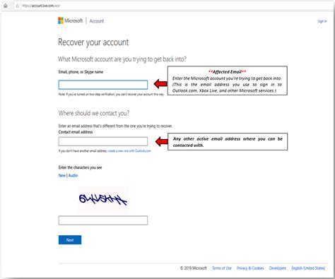 microsoft account recovery page https //account.live.com/acsr