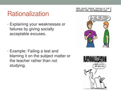 rationalization defense mechanism example situation. There are any references about rationalization defense mechanism example situation in here. you can look below.