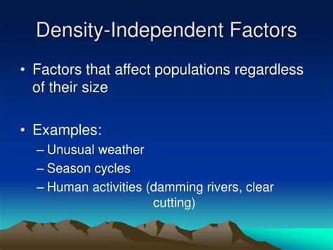 what is an example of a density independent factor that can limit population growth. There are any references about what is an example of a density independent factor that can limit population growth in here. you can look below.